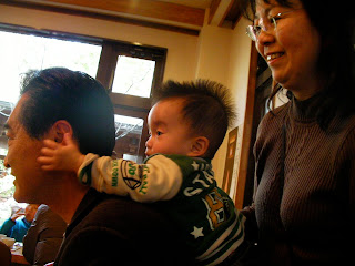 こうちゃんは人の顔をよくいじって遊びますが、今日はご祈祷を待っている間じぃじのお耳で遊んでました(笑)