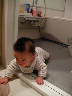 今日はお風呂を洗っているママを追いかけて簡単にお風呂場に侵入してきました!