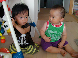 まだヨタヨタ歩くこうちゃんの横を、重たいペットボトルを軽々持ちながらしぃちゃんは安定したあんよで何度も通り過ぎて行きました。