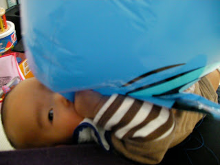 ゴム風船は口には入れて欲しくないけど、ビニール風船なら心配ないしなかなか良いおもちゃになりました♪