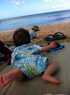 ななちゃんもゴザの上で海とお兄ちゃんを眺めて楽しそうにジタバタしておりました。