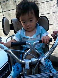 前はおんぶでしたが、暑くなって来たので、こうちゃん専用シートが用意されました☆