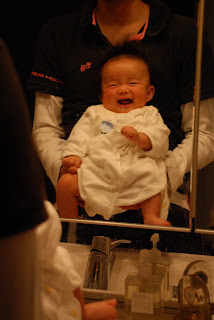 とにかくその笑顔が超可愛いので、最近はしょっちゅう洗面所であやすようになりました。