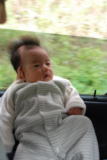 オムツを替える暇もなく乗り込んでしまったので、かなり雲行きの怪しい出発になったけど、ちょっとグズグズしただけで、少しおっぱいを飲ませたらあとはスヤスヤ寝てくれました。