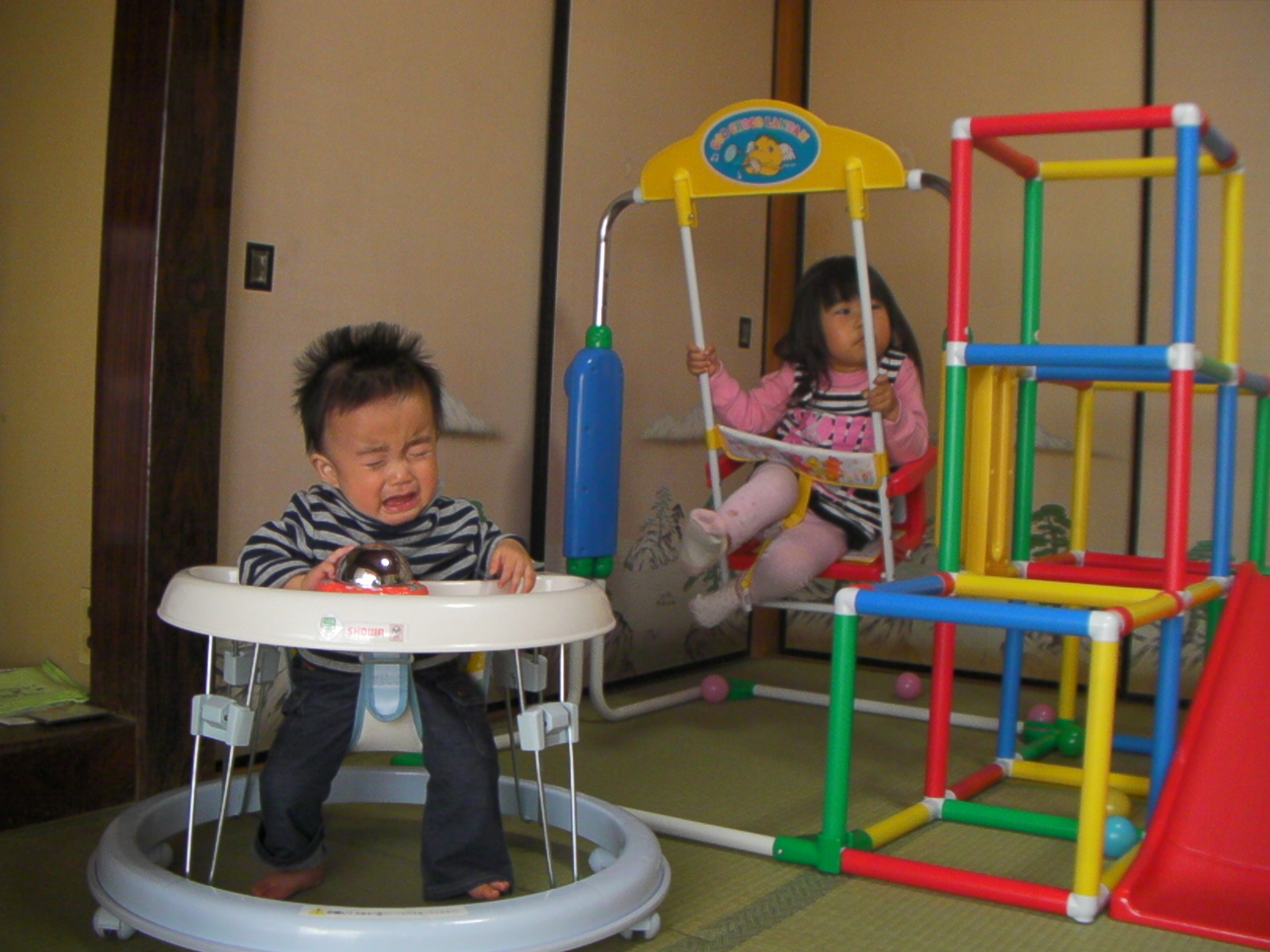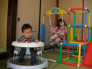 こうちゃんに試してみたかった歩行器もあったので乗せてみましたが、全然歩いてくれませんでした・・・かなり期待してたのに残念。