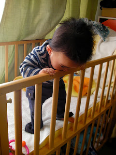 まるちゃんの寝ているベビーベッドもちょっとお借りしてみました。