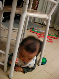 こうちゃんは最近椅子のくぐり抜けを覚えました。