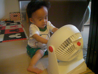 そんなカゼ予備軍の状態なのに、新しく買った扇風機で遊ぶのに夢中なこうちゃん。