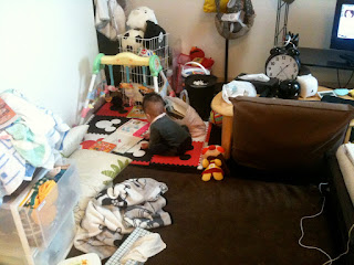 こうちゃんがうつ伏せで絵本見ながらご機嫌で遊んでいるので、パパもママも自分の用事をしていました。