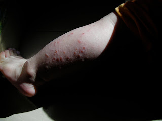 食事はほとんどとらない状態が続き、昨日の夕方から手足の発疹が出始めました。