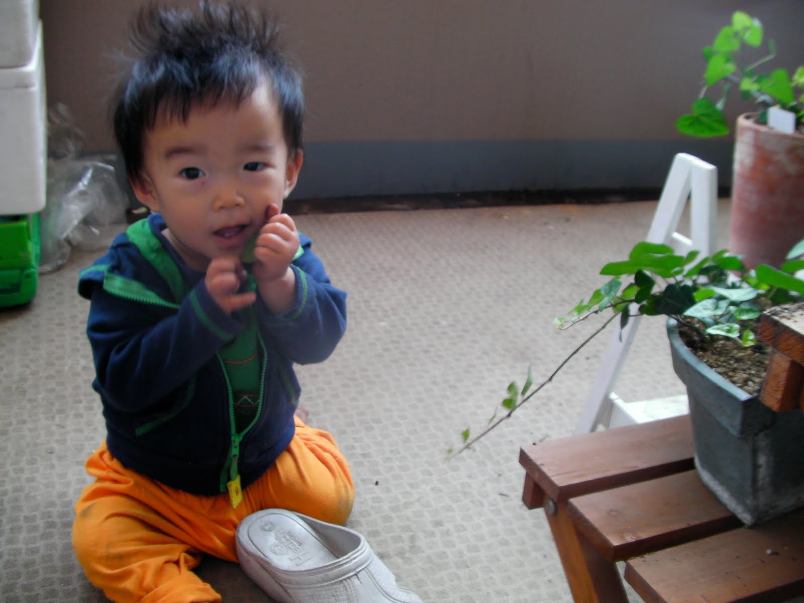植物の葉っぱも次から次へとむしられました・・・もうママは途中から根負けして好きにやらせました。