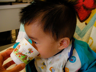 保育園でコップを使い始めたので、麦茶をコップであげるようにしてみたらゴクゴクとっても上手に飲んでいました☆